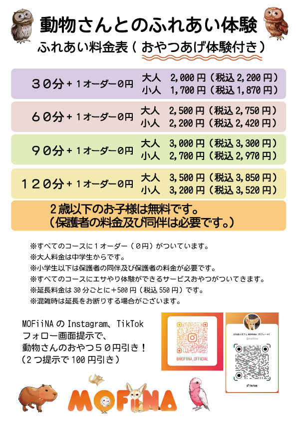 フクロモモンガ•カピバラ•フェネック・ハリネズミなど