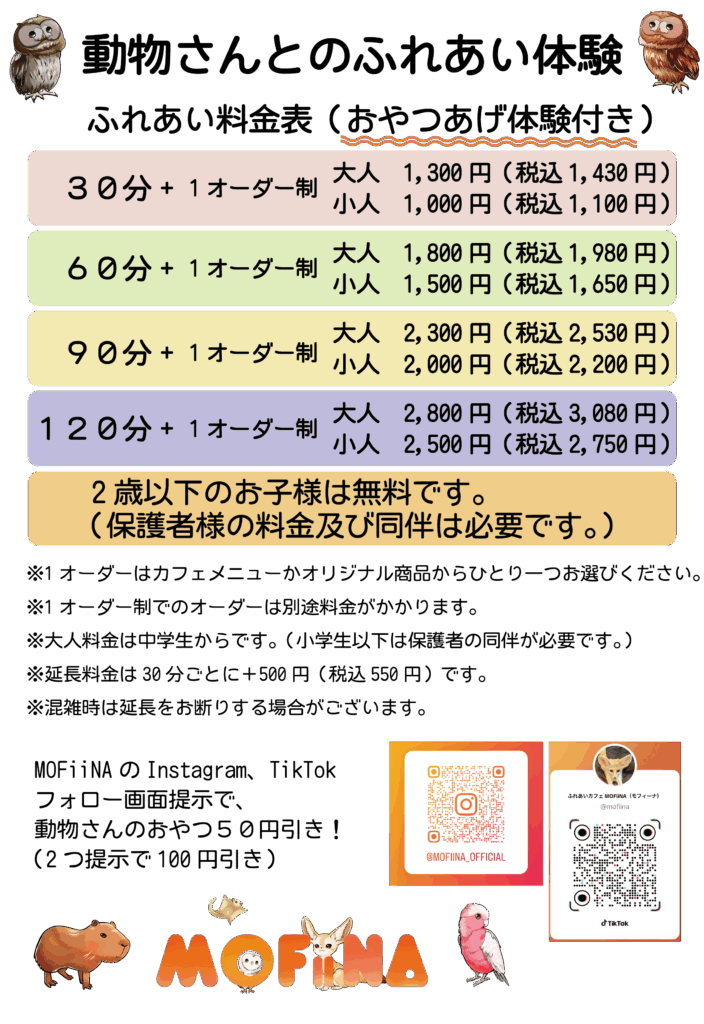2026年1月からのふれあい料金及びフードメニュー改定のお知らせ