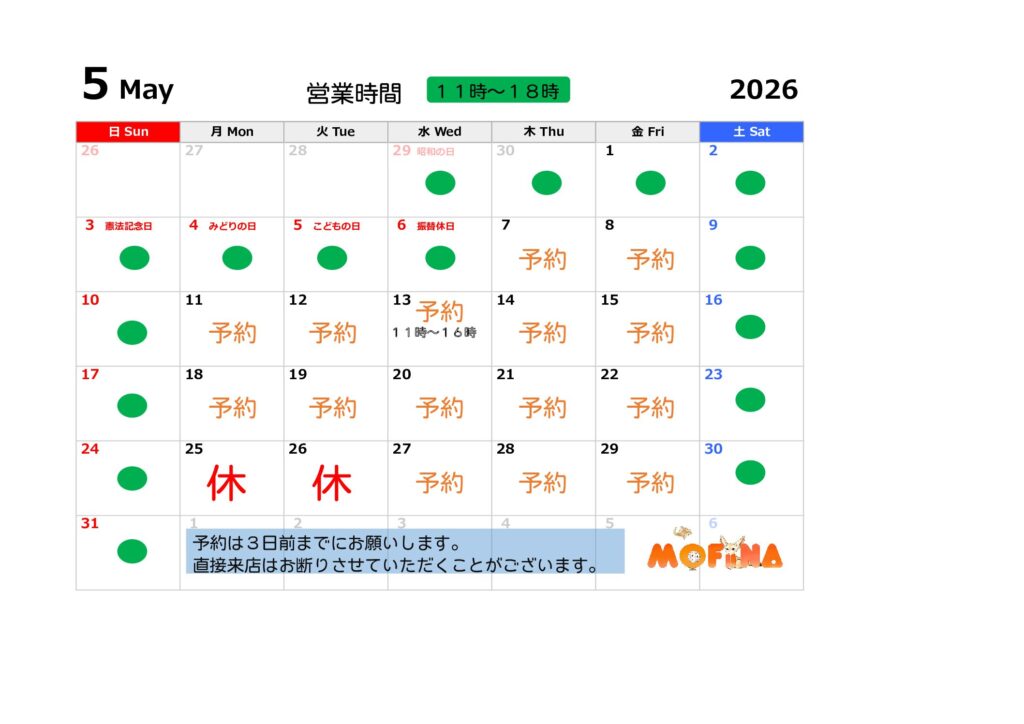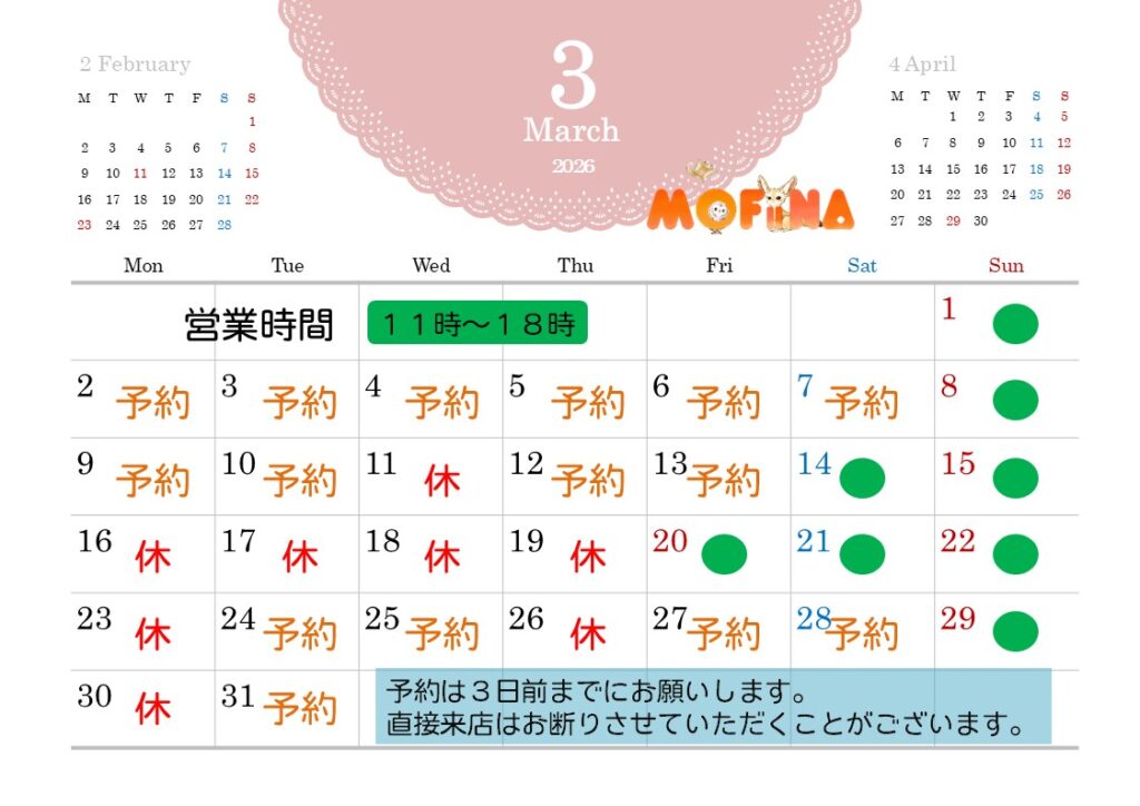 また、当日予約の場合はできるだけお電話でお願いします。